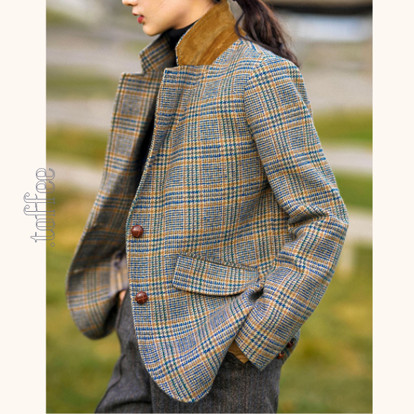 上品さとカジュアルさを兼ね備えたグレンチェック柄のテーラードジャケット。
