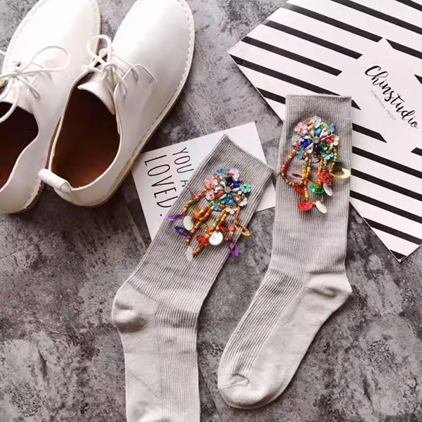 フラワービーズ装飾クルーソックス4点セット 《Z00774》