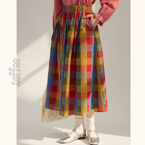 カラフルチェック柄ロングフレアスカート 《Z00786》