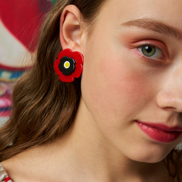 片方は花びらモチーフ、もう片方はストライプ模様の円型のイヤーアクセサリー。